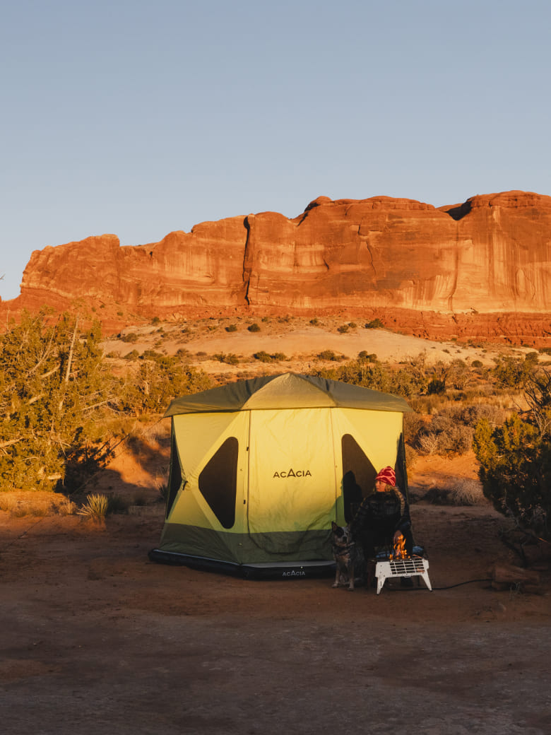 The pop-up tent is a breeze to set up and engineered to withstand the elements of nature from rain and wind to flames.