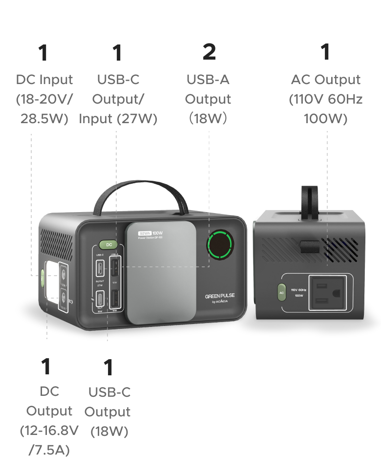 Acacia's 100W power station supports USB-C and AC charging, fully charging the power station in just 1.5 hours.