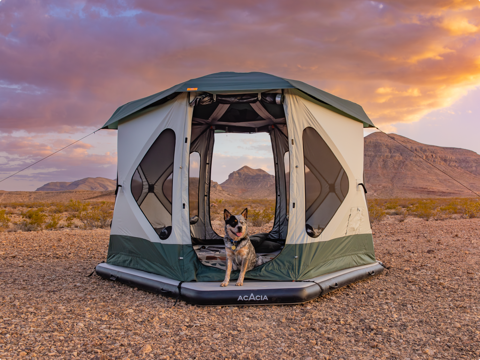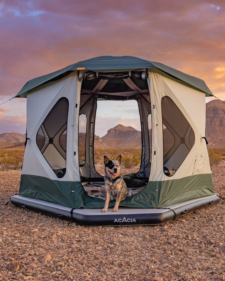 Acacia's pop-up tent features large interior and industry-leading weatherproof performance, keeping you safe and cozy in the great outdoors.
